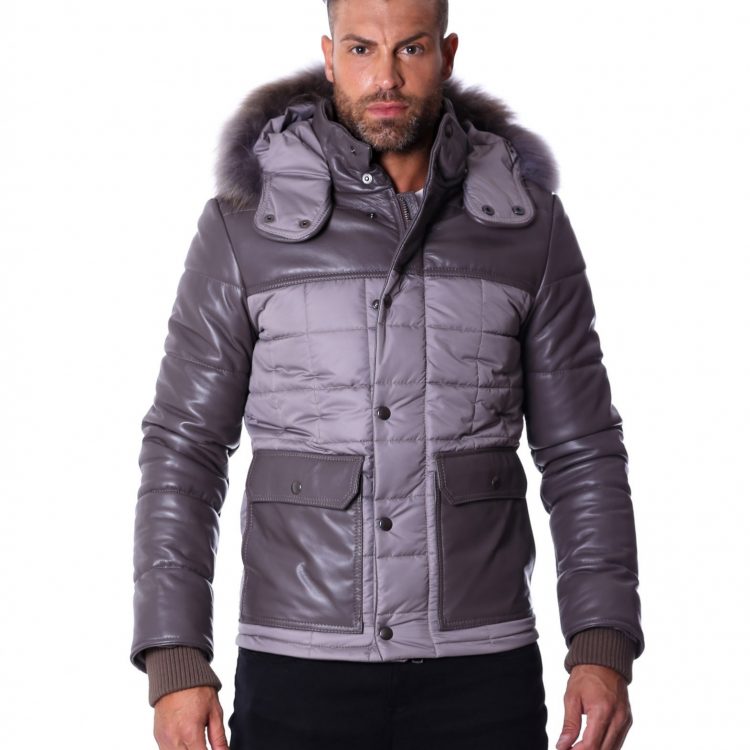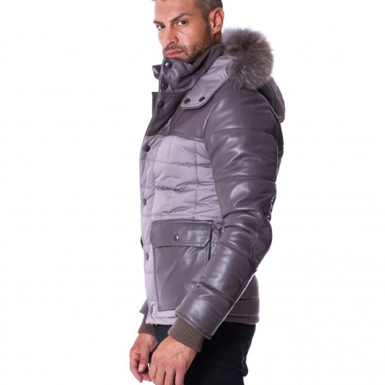 Add to WishlistQuick ViewU503 - Grey Leather Fabric Down Hooded Jacket