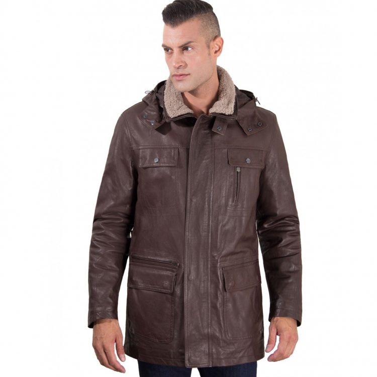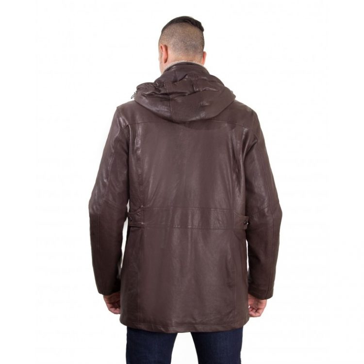 $390.00 – $435.00Genuine long leather coat, detachable hood, zip and buttons closing, suede wizened soft leather, brown color